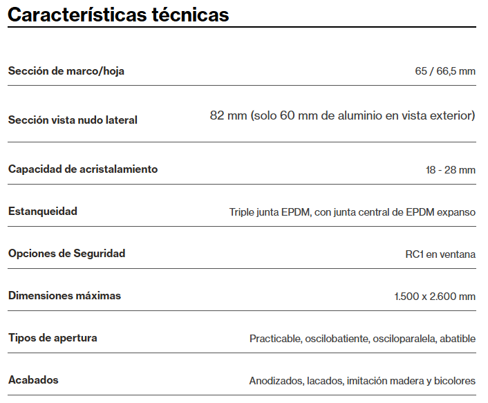 Ventana diseñada para un mercado altamente competitivo, con un perfil exterior esbelto y minimalista que aporta una estética moderna y vanguardista a la fachada.