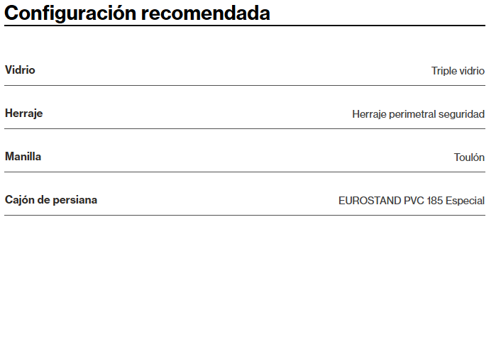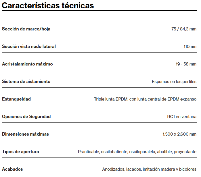 Ventana de gama PREMIUM que ofrece un alto nivel de innovación y un diseño cuidado, ideal para proyectos exigentes. Incorpora poliamidas de 34 mm y relleno en los perfiles, garantizando un excelente aislamiento y hermeticidad.