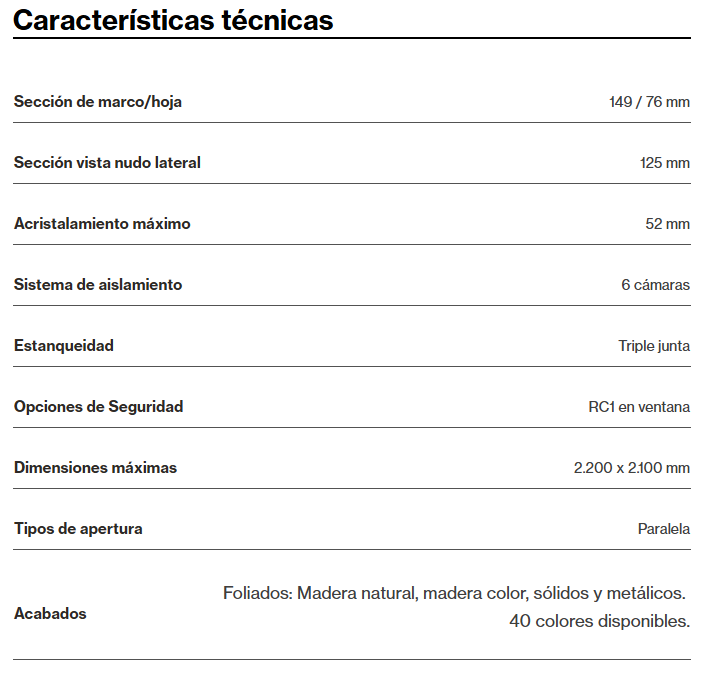 Ventana deslizante para grandes huecos que combina las ventajas de las correderas, como el ahorro de espacio, con las prestaciones y el aislamiento propios de las ventanas practicables.
